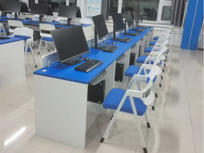 Create dynamic, technology-enhanced learning environments with our premium multimedia classroom furniture, designed specifically for educational institutions across Thailand. This project showcases a versatile and functional setup—featuring both rectangular and curved computer desks, paired with highly adaptable chairs—ideal for computer labs, interactive learning spaces, and digital classrooms.