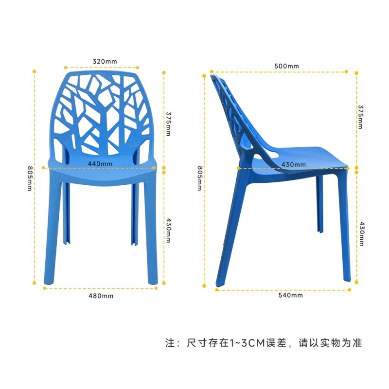 3. plastic outdoor chair : seat height 430mm, seat width 440mm, seat depth 430mm. The seat is designed according to the curve of the human body with a comfortable ratio, high recognition, good seat feeling, etc.